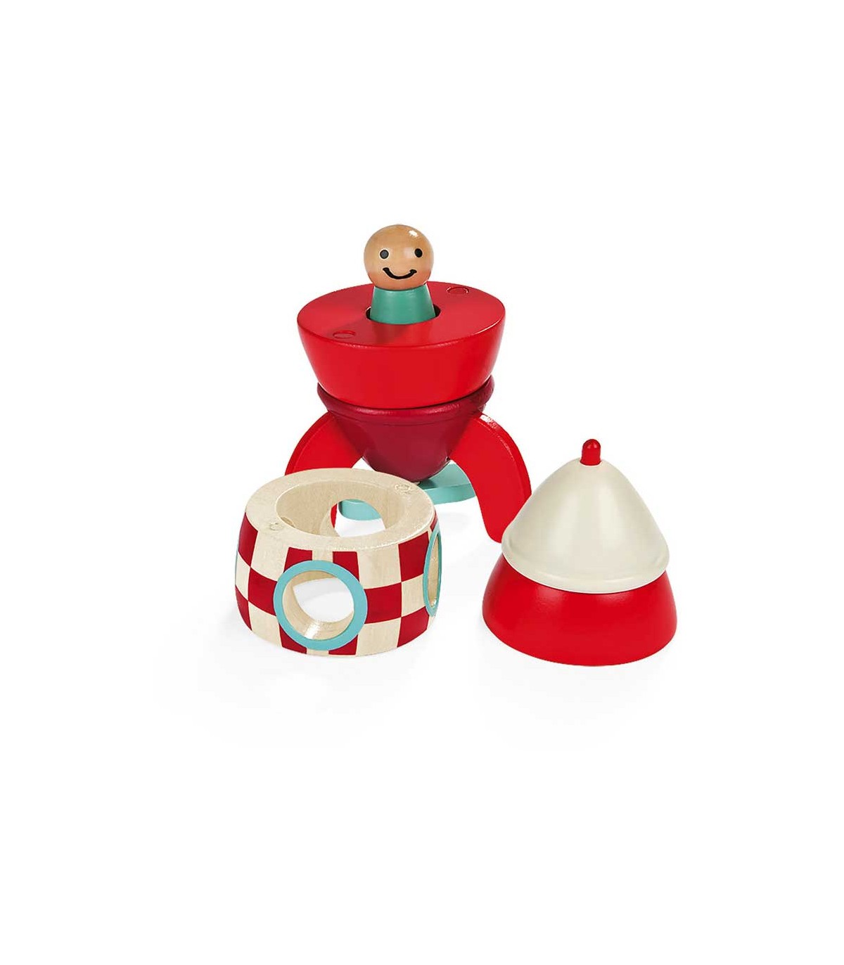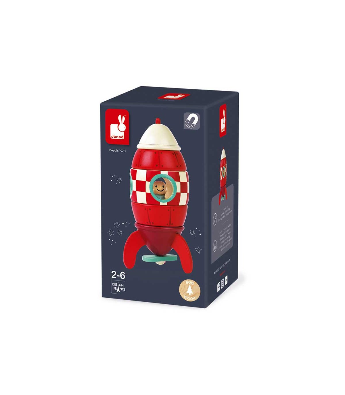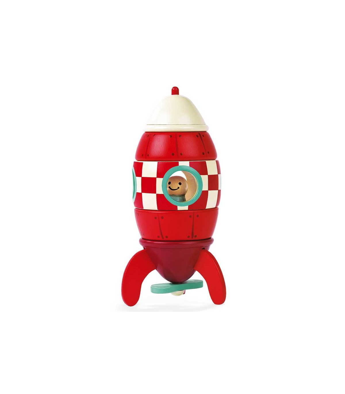 Maqueta magnética de un cohete para montar y desmotar las veces que quieras, fabricado en madera de haya y cerezo.
