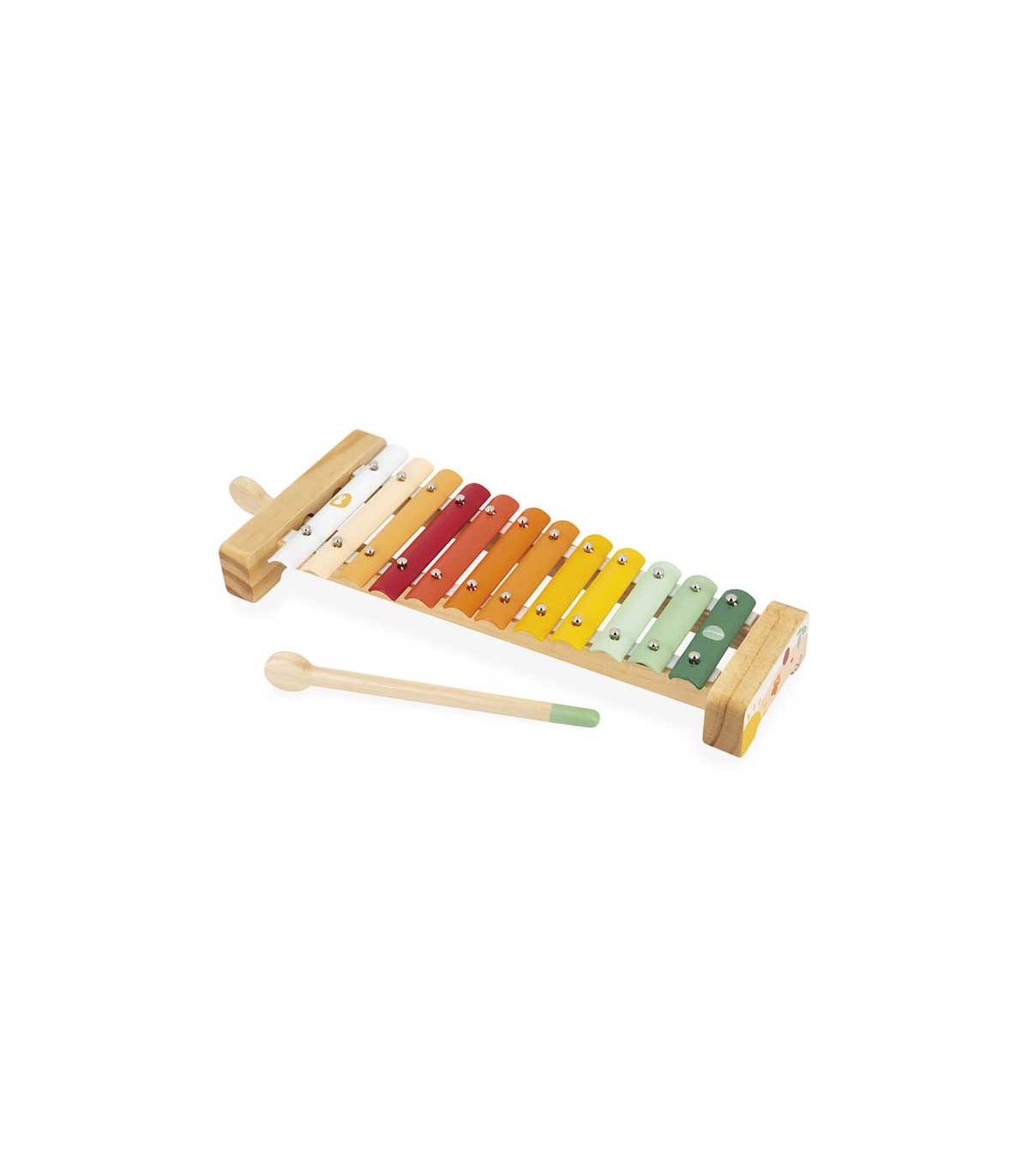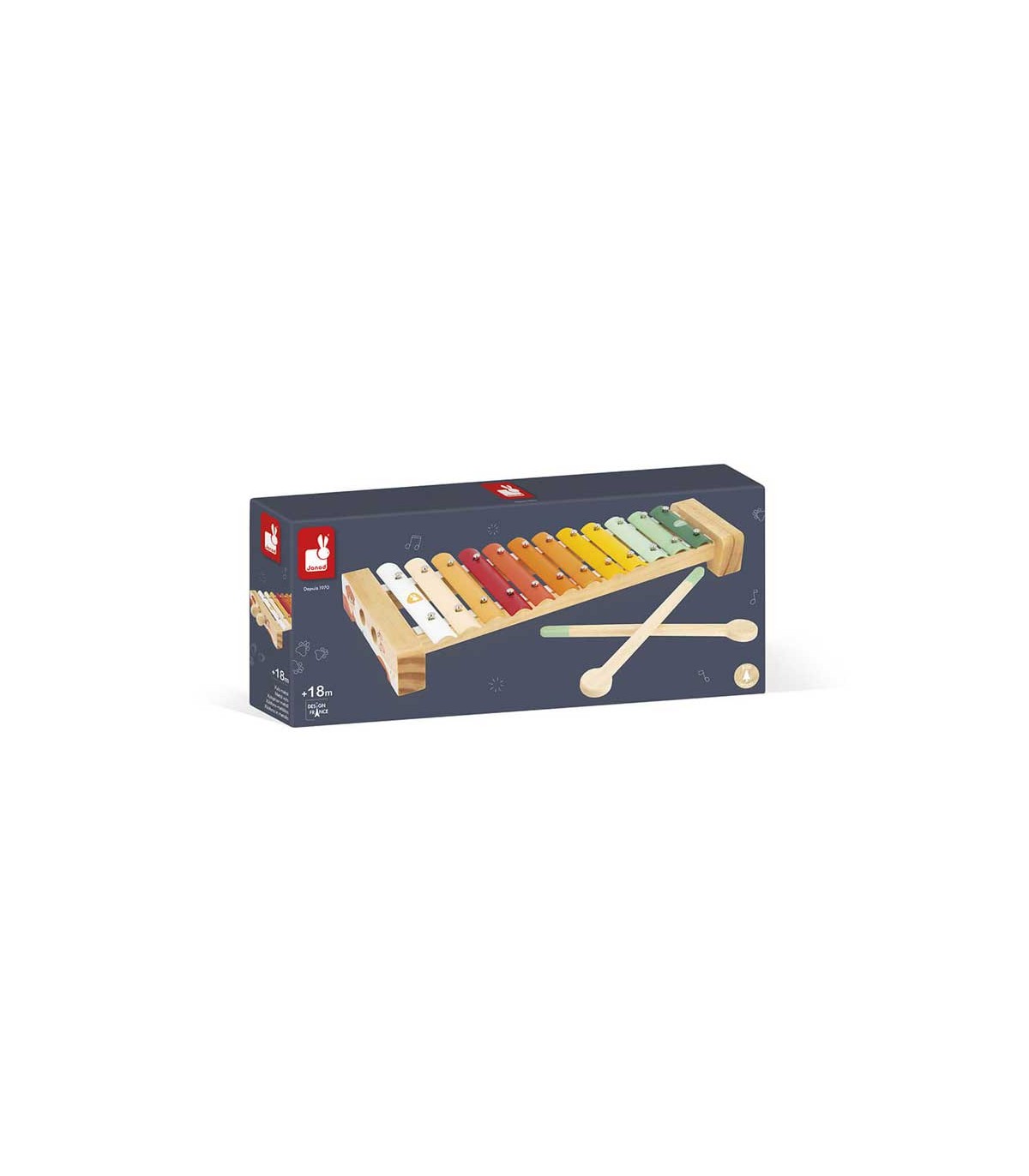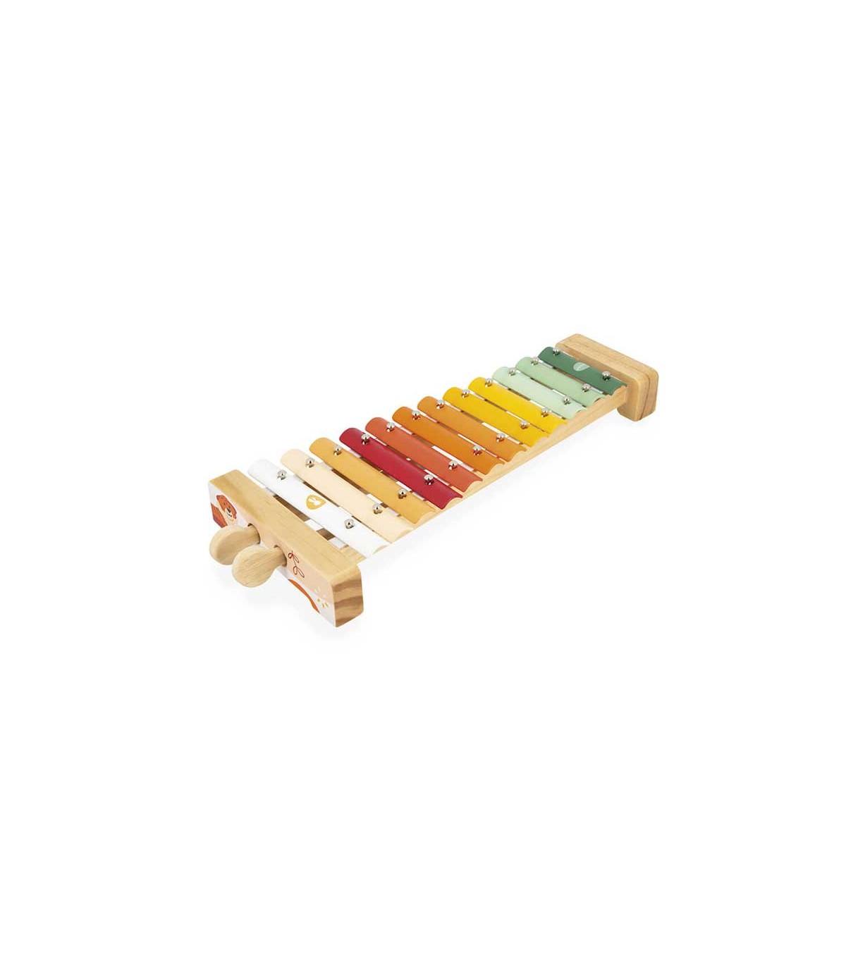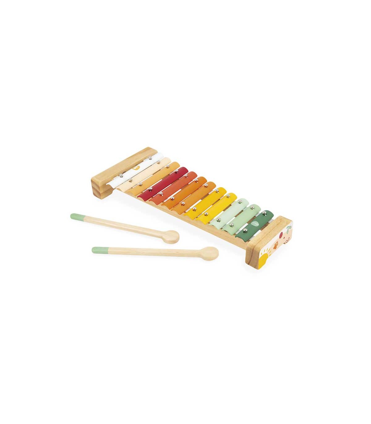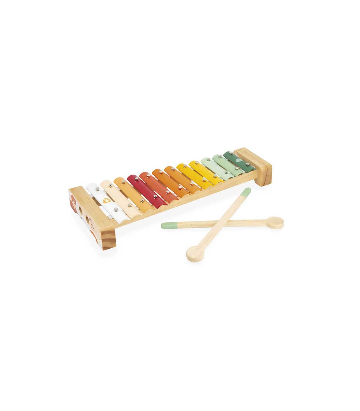 Xilófono de madera y metal con 12 tonos, incluye 2 baquetas.