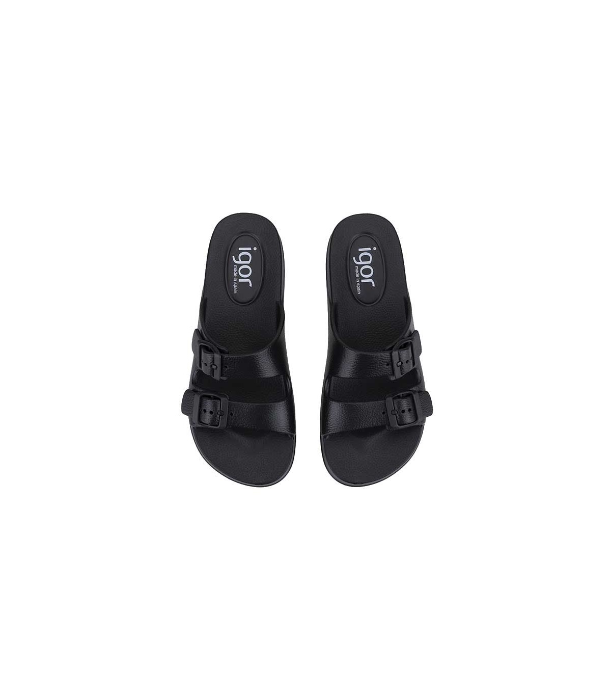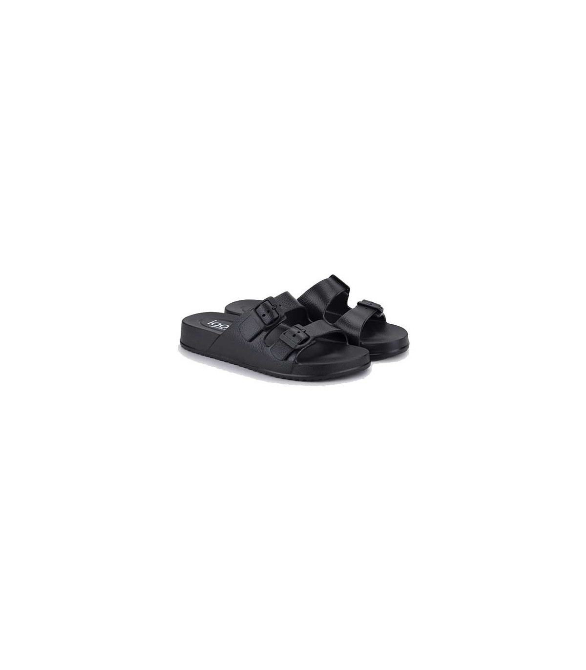 Sandalia abierta por el talón estilo Bio con cierre de hebilla en color negro.