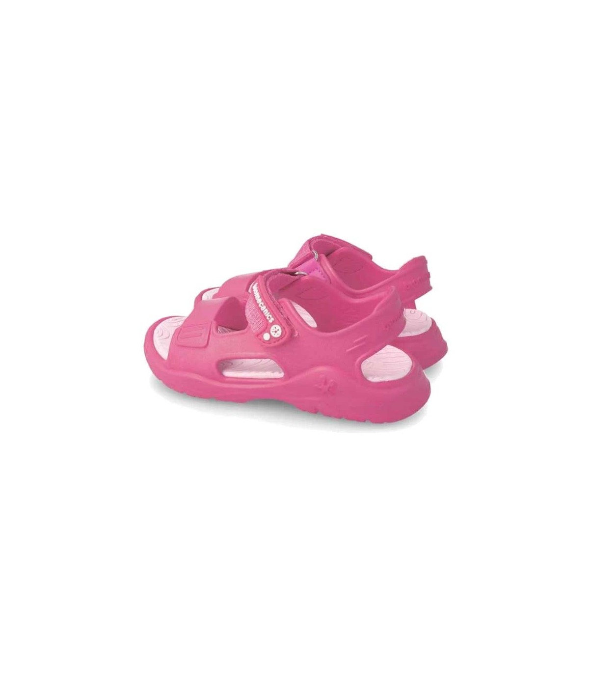 Sandalia Biomecanics Beach en fucsia y rosa, perfecta para ir a la playa, piscina y practicar deportes donde haya agua. Fabricado en goma con cierre de velcro y suela de EVA.