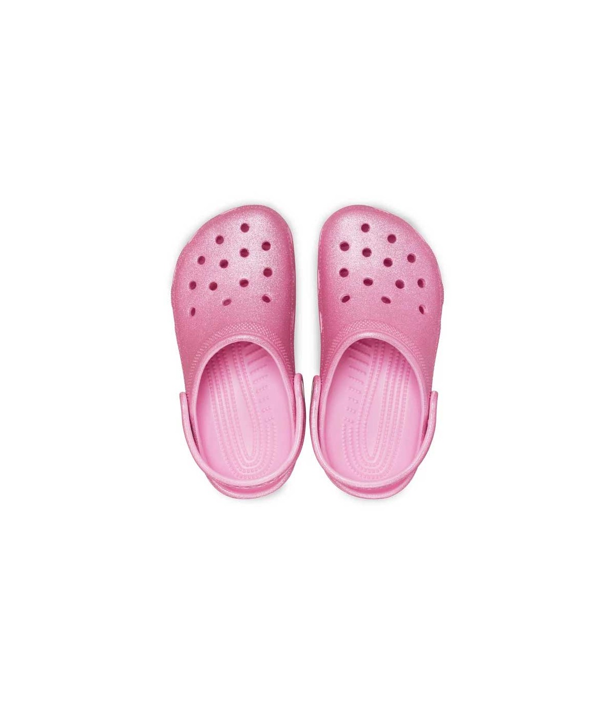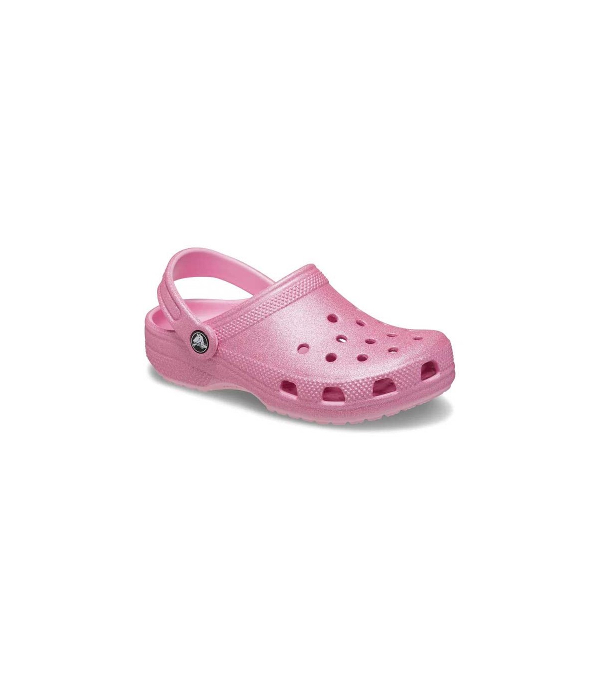Zueco Crocs para niñas Modelo Classic Clog en color rosa con purpurina. Calzado ligero y cómodo.