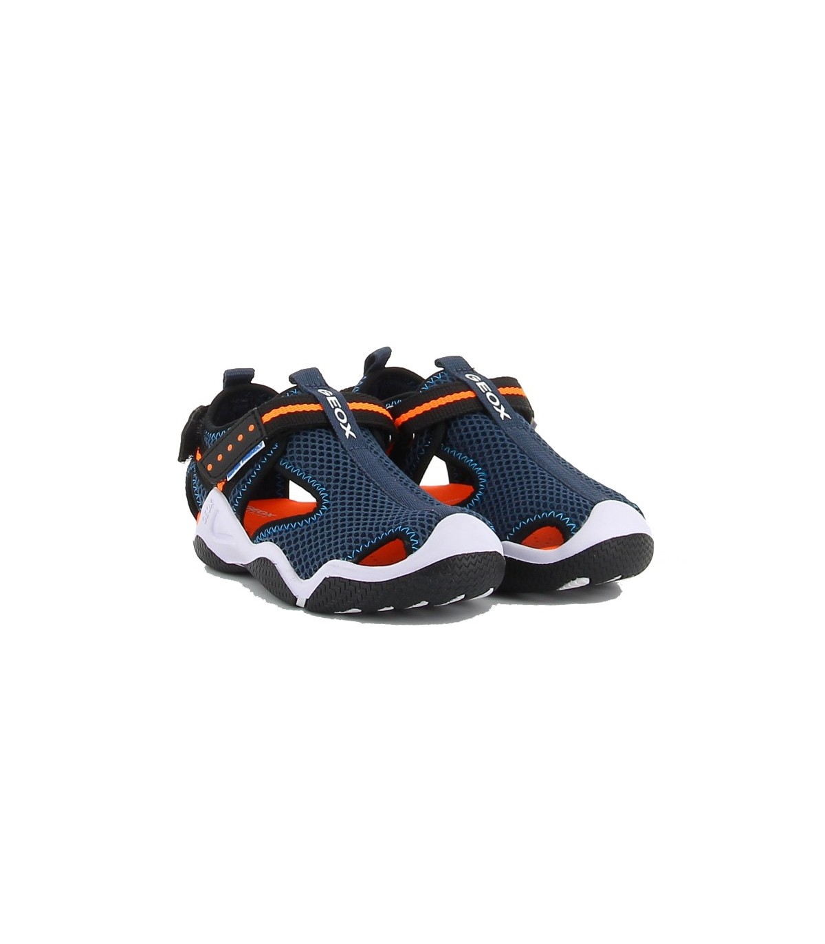 Sandalia Geox Wader en color azul y naranja, para actividades deportivas al aire libre.