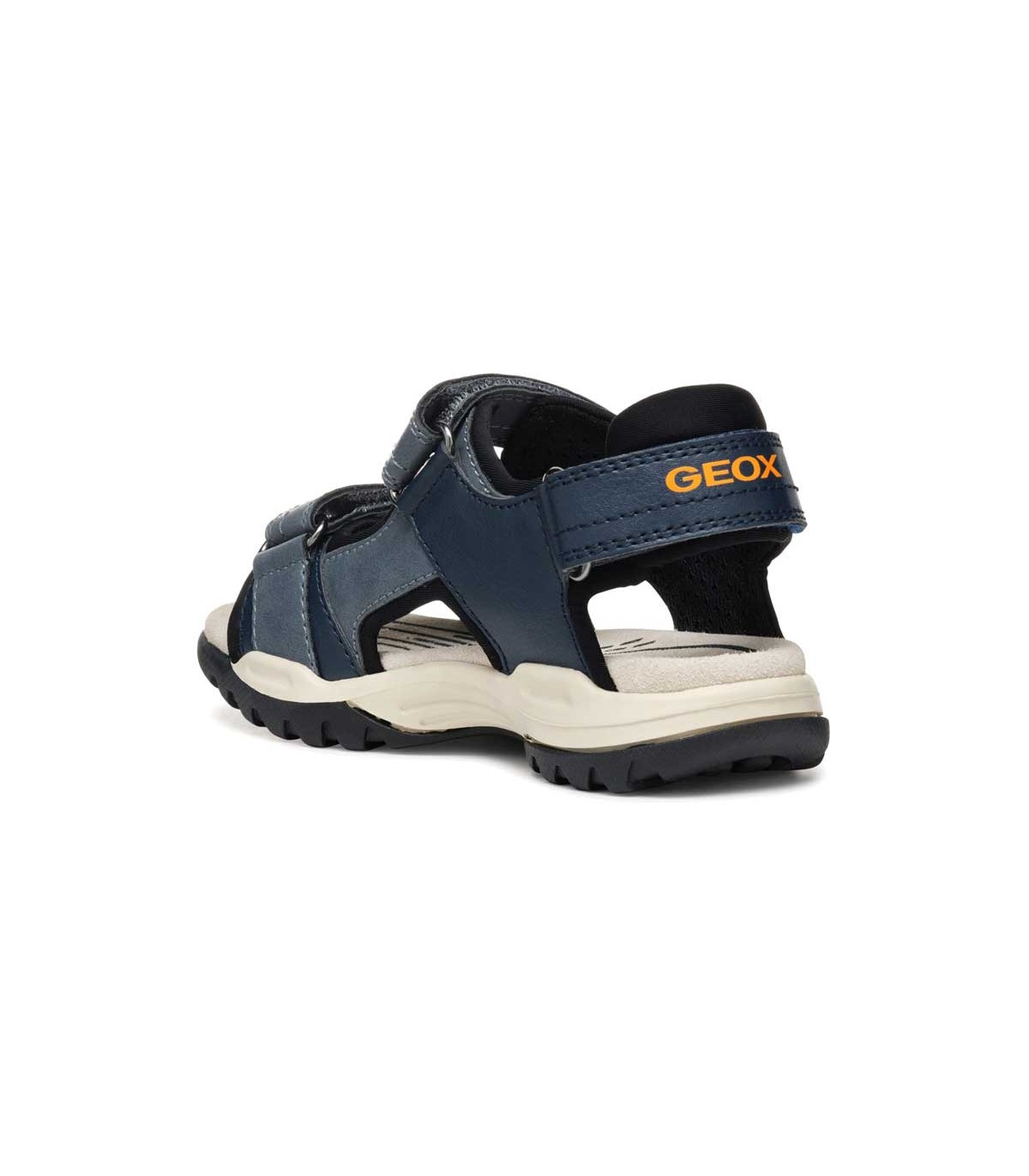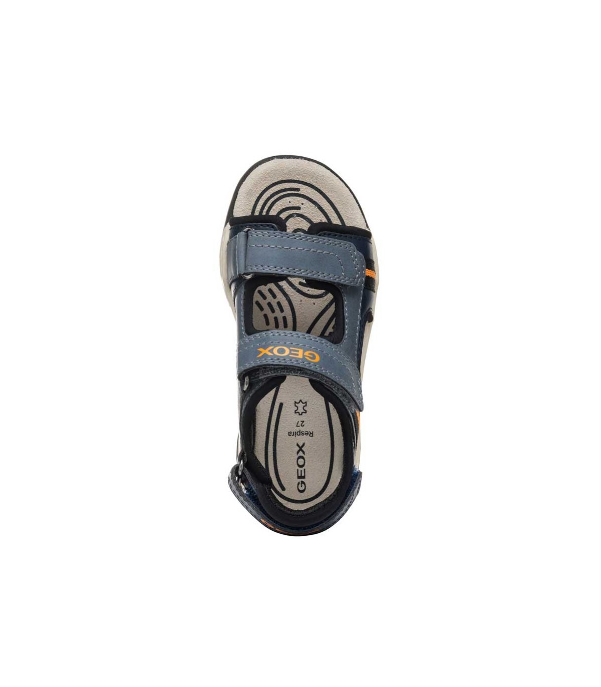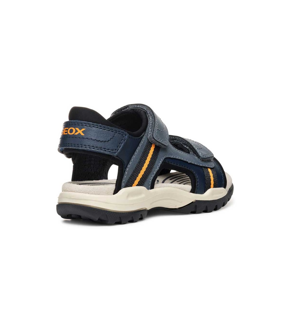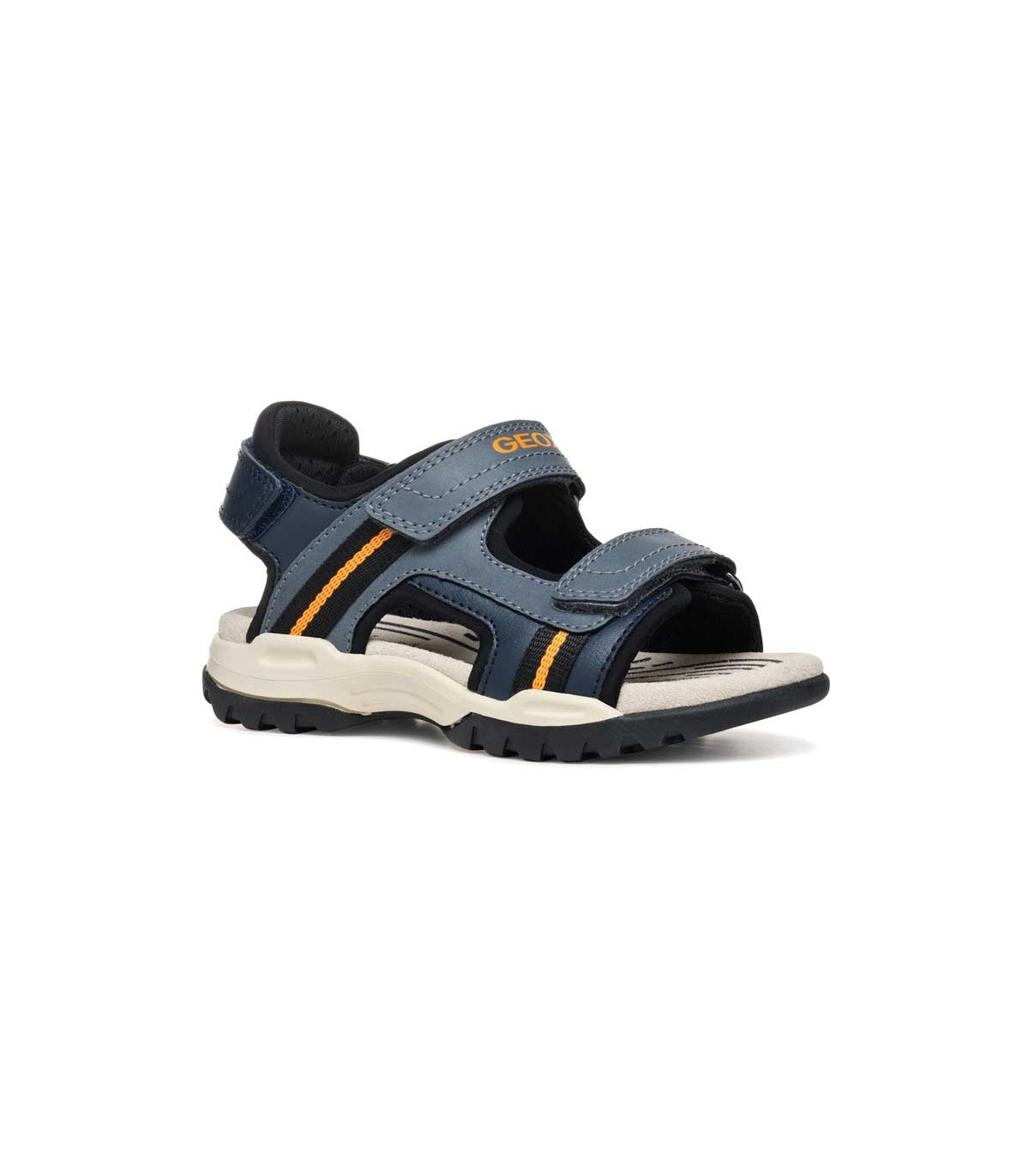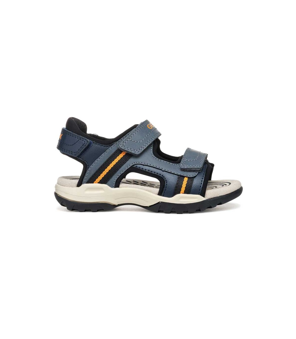 Sandalia Geox Borealis niño color azul marino y naranja, ajustable con dos velcros, comodidad para un uso diario y diseño sport.