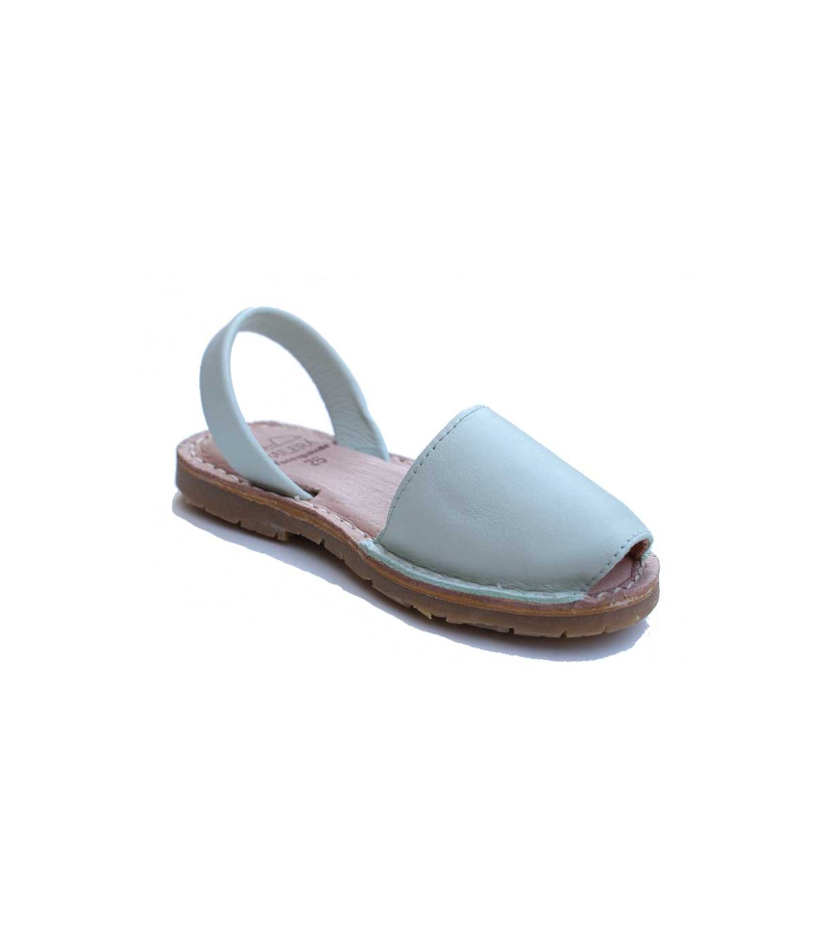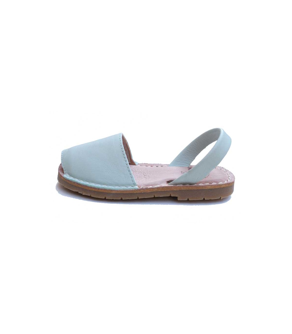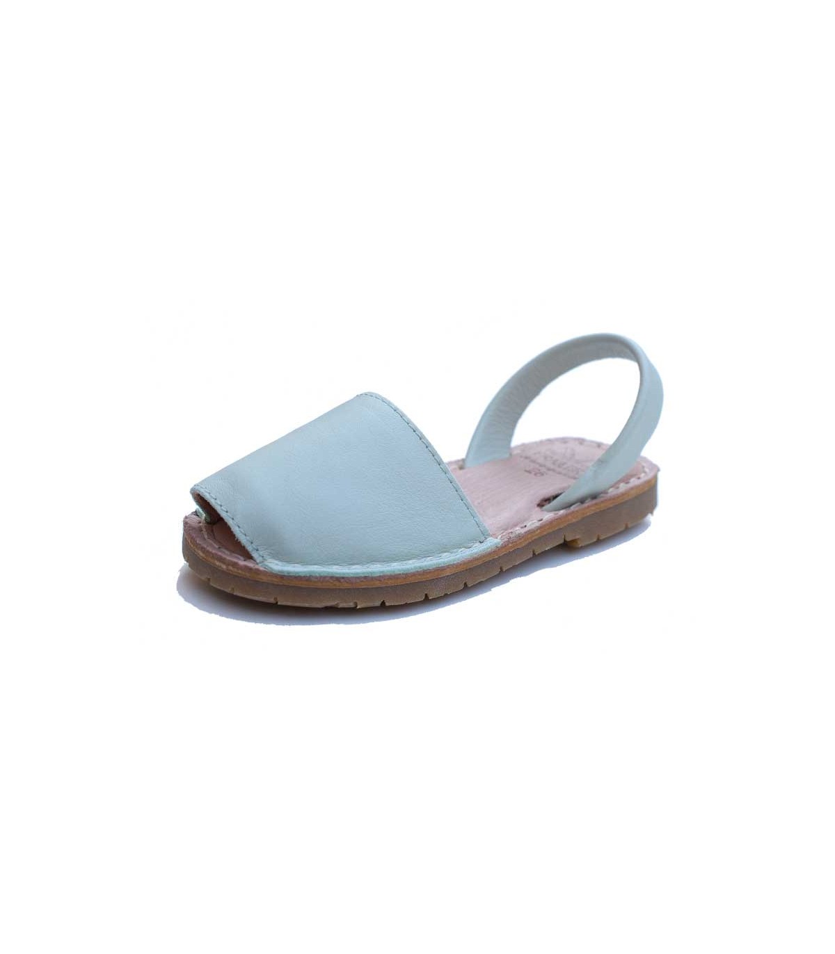 Avarca en piel color azul marino, de piel con formativo, suela de goma en color miel, imitación rueda de coche, antideslizante.