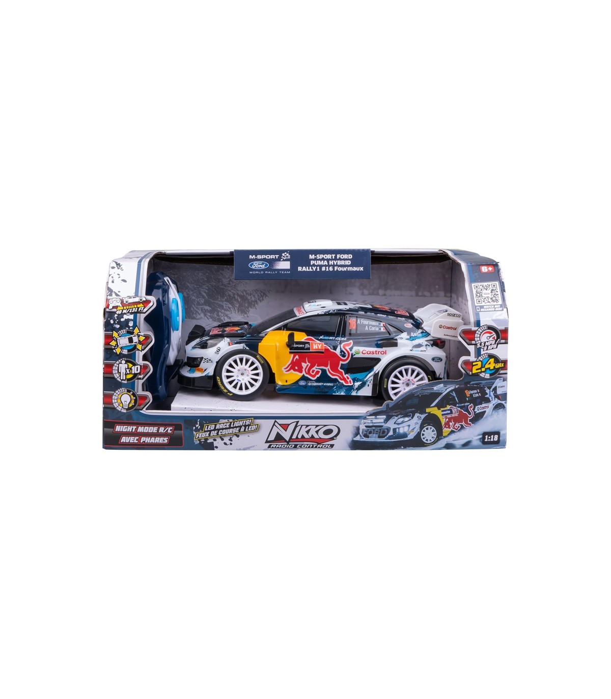 Coche radio control réplica oficial A Fourmaux, escala 1:18. Funciones completas, adelante, atrás, izquierda, derecha y luces. Radio frecuencia 2,4 GHz, multi banda. Recomendado a partir de 6 años. Requiere Baterías.