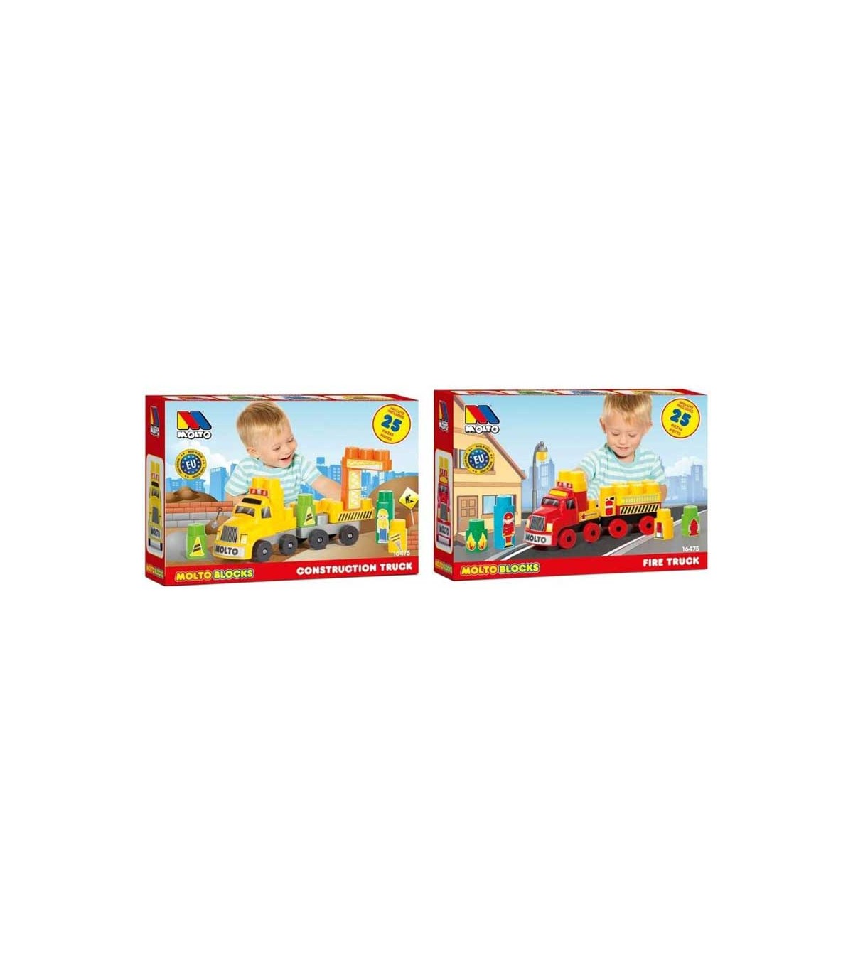 Divertido camión con 25 bloques para realizar construcciones. Dos modelos diferentes.