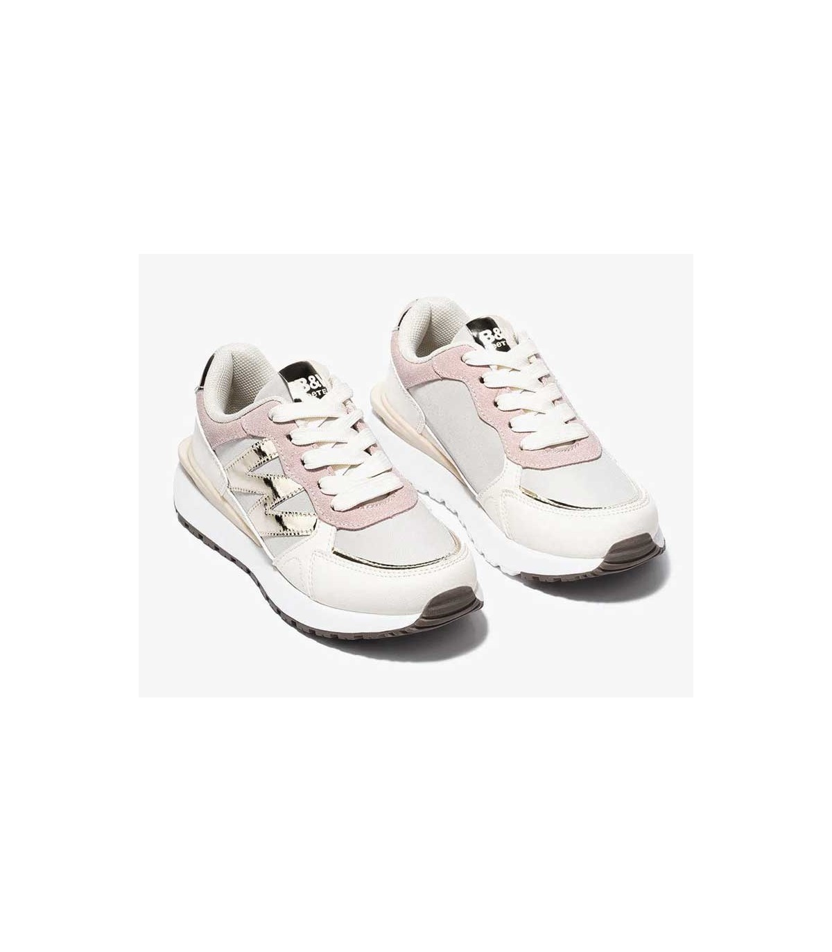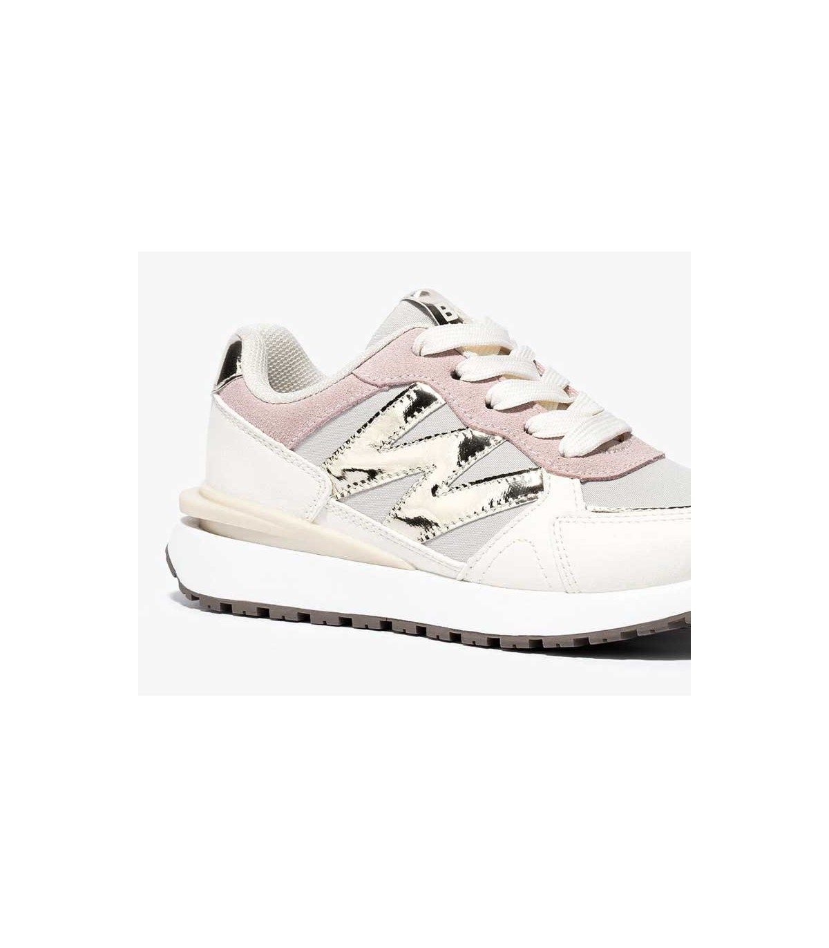 Deportova en napa y nilón beige, con detalles en dorado. Suela de goma y cierre con cordones.